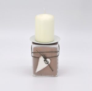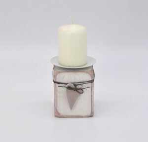 Kerzenhalter aus Holz mit Herz in altrosa/weiß Material: Holz mit Metallhalterung für Stumpenkerzen Mit Liebe in Handarbeit hergestellt Größe: H11 B7,5 T7,5cm
