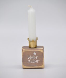 Kerzenhalter Winterzauber aus Holz mit Krone in weiß Material: Holz mit Metallhalterung für Stabkerzem Mit Liebe in Handarbeit hergestellt Größe: H6 B6 T4cm
