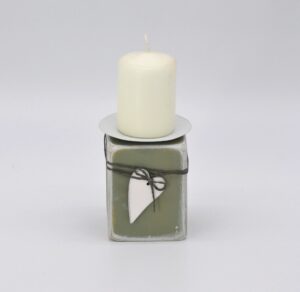 Kerzenhalter aus Holz mit Herz in lindgrün/weiß Material: Holz mit Metallhalterung für Stumpenkerzen Mit Liebe in Handarbeit hergestellt Größe: H11 B7,5 T7,5cm