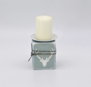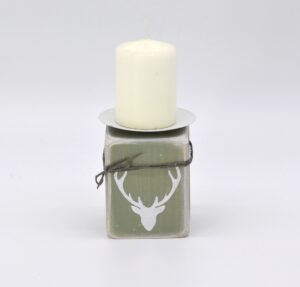 Kerzenhalter aus Holz/Hirsch in agave/weiß Material: Holz mit Metallhalterung für Stumpenkerzen Mit Liebe in Handarbeit hergestellt Größe: H11 B7,5 T7,5cm
